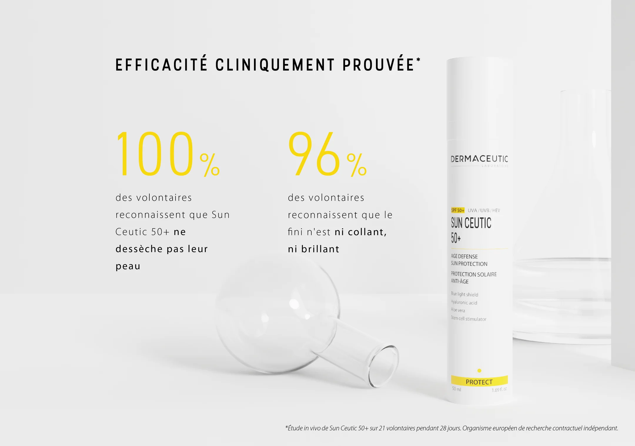 Sun-Ceutic 50 është i përshtatshëm për përdorim të përditshëm duke ofruar mbrojtje të besueshme për çdo lloj lëkure, përfshi edhe lëkurë të ndjeshme.